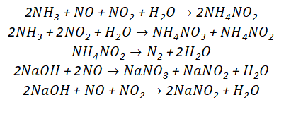 首先是氨在氣相中和N 、水蒸氣反應(yīng),然后再與堿液進(jìn)行吸收反應(yīng)。反應(yīng)式如下: