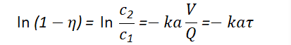 式中, C1、C2為尾氣中NO2進(jìn)塔、出塔濃度,kmol/m3;;η為吸收效率;k為傳質(zhì)系數(shù),kmol/m3;Q為處理氣量,m3/s;V為自由空間容積,m3;a為填料比表面積,m2/m3τ為接觸時(shí)間,s。
